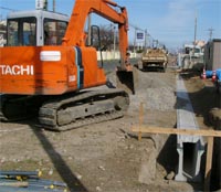 ![]() 下水管敷設工事。この土留め工の間に敷設。 |