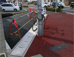 ![]() 交差点南東側のミニパーク。車は進入できないよう、車止めが立ち、 交差点側に植栽が施され、小さなベンチが設置されています。 2012/3/25 |