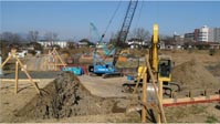 2008/5/3、世の中ではGWの真っ最中のこの日、西部うぬき橋の架設現場では休日返上で工事を行っていました。前回報告から1週間も経過していませんが、現地では既に主桁の架設が始まり、右岸側スパンの主桁ブロックが橋脚と支保工(しほこう)の上に乗り、河川敷のヤードには次の主桁ブロックが仮置きされていました。(2008/5/5 記) 2008/4/27、昨年6月に下部工工事を終了後、この春先まで変化がなかった現場を久し振りに訪れてみると、斜張橋の主塔が立ち上がり、主桁用架設用の鉄骨支保工も組み立てられていました。(2008/4/28 記) 伊勢崎市議会の臨時議会が2007年7月9日に開催され、西部人道橋上部工事(製作・架設)の議案が全会一致で可決されたとのことです。2回に渡る指名業者全社の入札辞退があっただけに、一安心です。(2007/7/12 記) このページでは広瀬川を挟んだ2つの公園、「西部公園」と「ラブリバー親水公園・うぬき」を結ぶ人道橋の工事風景を紹介します。これら2つの公園はそれぞれがとても大きくて立派な公園ですが、両者を往復するには上流の龍宮橋か下流の三ツ家橋を渡るしかなく、両方の公園を楽しむのはなかなか大変です。人道橋が完成しますと、両者の往復が容易になるだけでなく、橋と広瀬川の風景がまた新たな名所になると思います。 H19/4/16日の伊勢崎市の広報によりますと、人道橋の形式は鋼斜張橋とのことでです。鋼斜張橋は利根川の坂東大橋や広瀬川水管橋と同一の形式で、楽器のハープのように斜めに張られたワイヤがとてもきれいで、吊橋の次に長いスパンに対応できる形式です。完成はH20年(2008年)春(→7月。詳細はこちら)。(2006/12/16 記、2007/4/18 追記) |