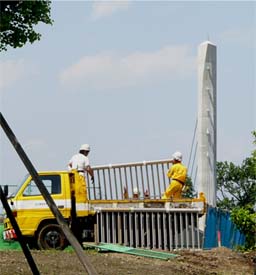 ![]() 取り付けを終えたケーブル 2008/5/23 ![]() 右岸下流側から全景 2008/5/23 ![]() 主桁側ケーブル定着部での作業風景 2008/5/23 ![]() 2008/5/23 ![]() 右岸上流側から全景 2008/5/23 |