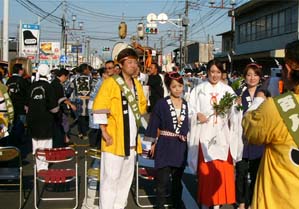 | 2007年8月11日〜12日に行われた恒例の「いせさきまつり」。その2日目、神輿を担いで本町通りを東から西まで行進する「百人みこし」が行われました。何年か振りに復活した行事とのことで行進を始める前に市長を招いての式典もありました。百人を優に越す人数の担ぎ手が集まり、それぞれ所属する会の半被を着て威勢のいい行進を繰り広げました。 夕暮れが迫る頃、初日と同様に市内のそこかしこから集まって来た山車が本町通りに集結し、お囃子合戦を繰り広げていました。 |