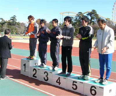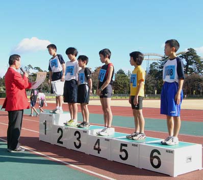 | ↑ 3kmのトップランナーのゴール 左端は花田勝彦選手 3kmの表彰式 ↓ |