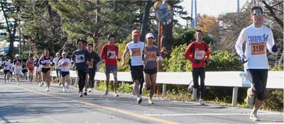 ハーフの参加者は招待選手40人を含めて255人![]() ハーフのランナーが ![]() 次々に走ります |