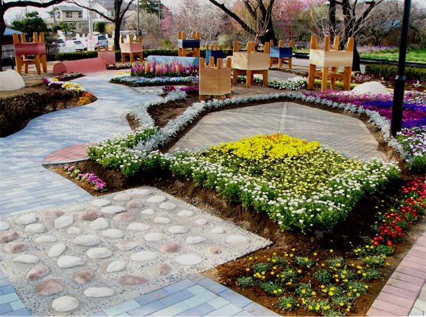 | 「みんなの広場」の西側にはデザイナーズガーデンがあります。企業や団体が作り上げた個性的なガーデンが並んでいます。この日、全部カメラに収め切れませんでした。徐々に掲載します。 | |