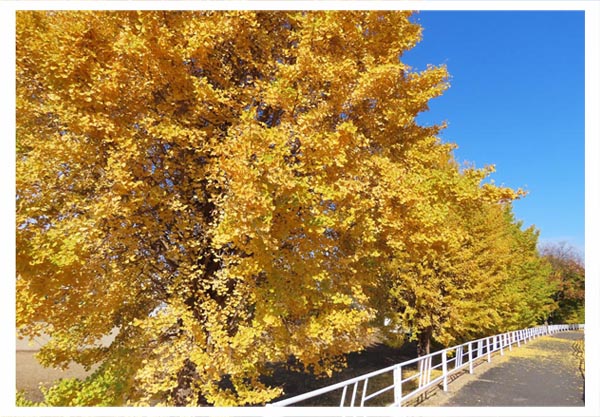毎年11月の中旬を過ぎる頃、街中や郊外をサイクリングしていると、探すでもなくあちらこちらの鮮やかな黄色が目に飛び込んで来ます。その主は・・・イチョウ。サクラやツツジ、花菖蒲や小菊のように、花見客が訪れるほどの注目は集めませんが、通りや公園を電灯の明かりのように温かく明るくしてくれるイチョウは、この季節に欠かせない存在です。そんなイチョウ。毎年決まった場所、また新たに発見した場所など、歳を重ねるごとに確実にその場所が増えていますが、同じ場所でも年によって別の顔を見せるのがまた楽しみです。ひょっとしたら、見る側のこちらが変わったのかも知れませんが・・・。(2009/11/25 記) |
