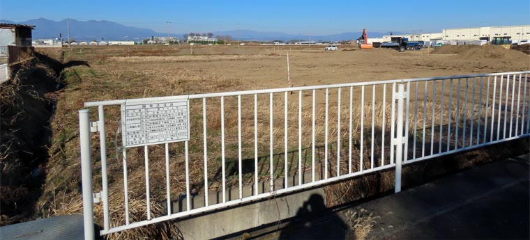 造成工事進む 2026/1/10![]() 建設進む倉庫(西側から) 2025/9/4 ![]() 埋め土・整地作業進行中の現場 2026/1/10 ![]() 埋め土・整地作業進行中の現場 2026/1/10 ![]() 埋め土・整地作業進行中の現場(南東角地から)。左側は北関東道側道。2026/1/10 ![]() 東側に隣接する会社との境界(南側から北方)。中央後方に赤城山。2026/1/10 |