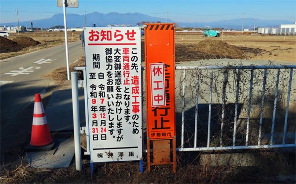 ![]() 造成工事が進む現場(敷地の北側から) 2026/1/10 ![]() 造成工事が進む現場(南東角地から) 2026/1/10 ![]() 造成工事が進む現場(南西角地から) 。左後方は赤城山。 2026/1/10 |
