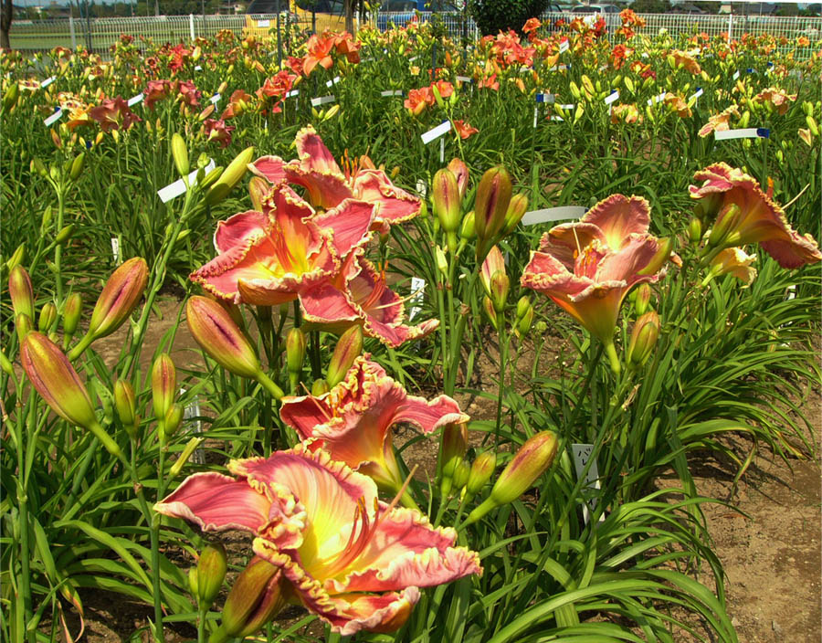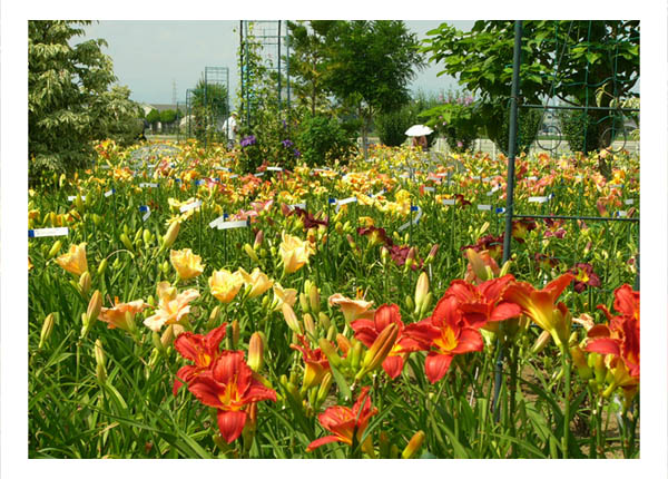 | ここで紹介したヘメロカリスはまだ一部です。きっと何回出かけても見落とすヘメロカリスがたくさんあることでしょう。園入口に立つ案内によれば、その種類は約1,300種類とのこと。7月2日時点では、まだまだたくさん蕾が残っていました。当分の間、咲き続けることと思いますので、是非出かけてみてください。入園無料です。なお、園の西半分は販売用ヘメロカリス園になっていますので、気に入った種類のヘメロカリスがあれば、その場で購入することもできます。(2013/7/4 記) | |