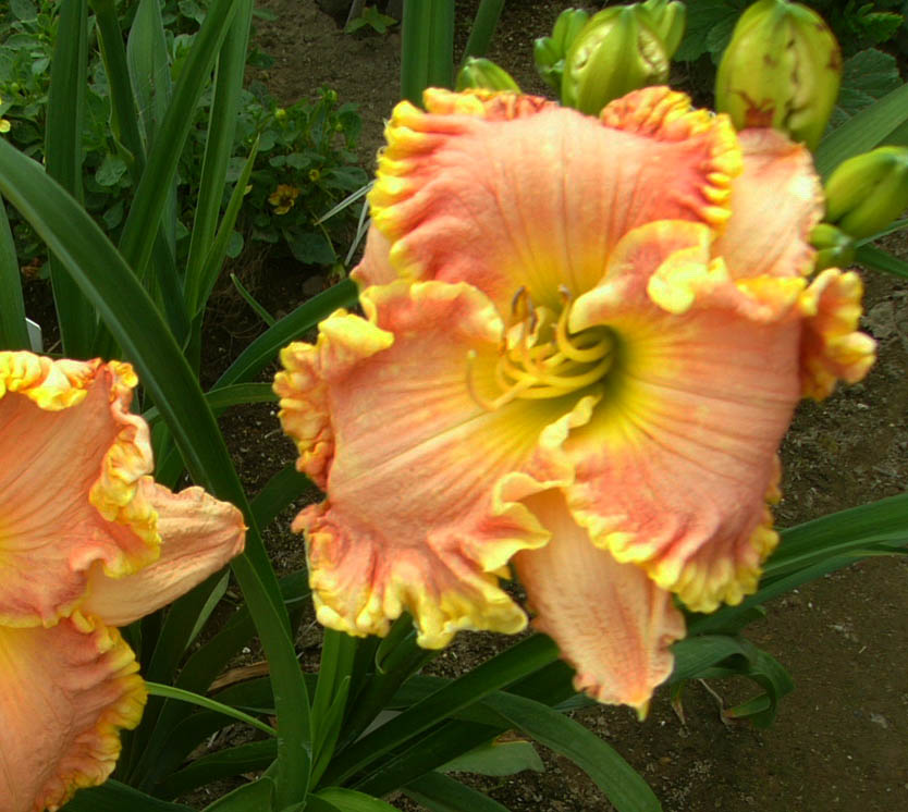 | 2013年4月20日から一ヶ月間に亘り、メイン会場を「波志江沼環境ふれあい公園」として開催された花と緑の祭典・「花と緑のぐんままつり 2013 in 伊勢崎」。この催しを機会に伊勢崎市では個人宅の庭を一般公開するオープンガーデンを開催し、伊勢崎市内の10軒のお宅が協力しました。(→オープンガーデン詳細はこちら) その10軒の中に、ヒロコドリームガーデン(伊勢崎市境上矢島)があり、私もオープンガーデン開催数日前の5月16日にお邪魔し、ちょうど見ごろのジャーマンアイリスや庭の様子を撮らせていただきました。 帰り際にヒロコさんに「ヘメロカリスの時期にまた来てください」と言われながらも、畑のように整然と一列に植えられたまだ葉っぱだけのヘメロカリスたち(下右の写真)が、どのような姿に変わるのか、予想も付かずにいました。 |