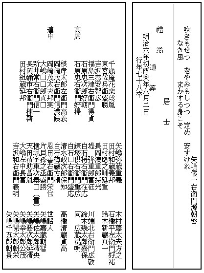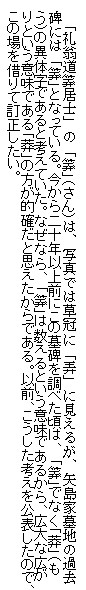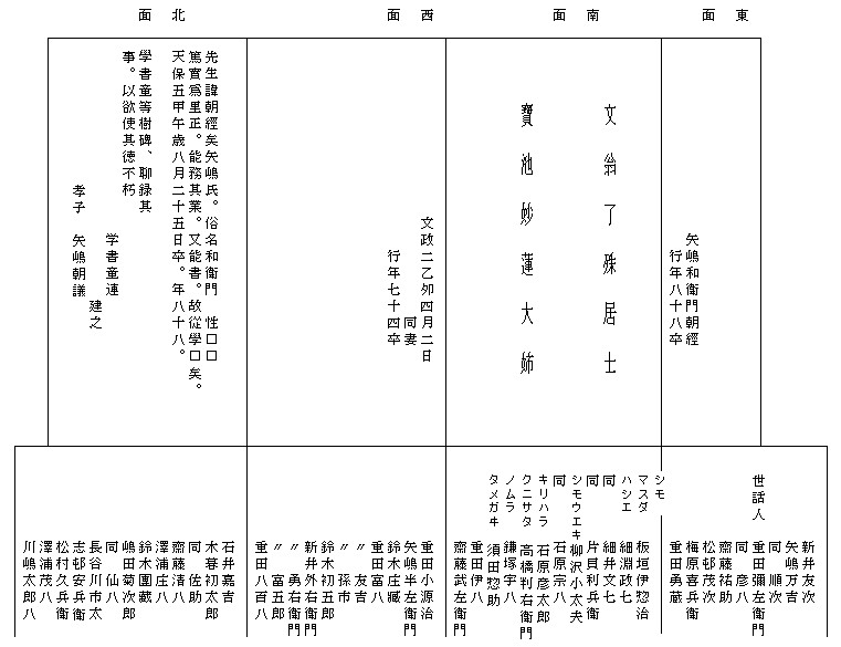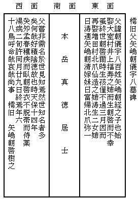 朝経の墓碑はにあるカタカナは、実際は縦書きである。碑文は、現在のところ未定稿である。