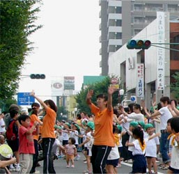 ![]() 本町通りを埋める参加者。一体何人いるのかなぁ?? いやぁ・・それにしても凄い人数。 5 ![]() お姉さんたちも楽しそうに踊ります。 「今年は浅草まで踊りに行くのよ〜。帰りのショッピングが楽しみ・・ウフ」 6 ![]() 良く見ると、お父さんたちも。いやぁ、皆などこで覚えたんだろうぅね? 7 ![]() お父さんも少女達も一緒になって。首のタオルがいいね。 8 ![]() お母さん達も一緒に。皆で踊ると楽しいね〜。 9 |