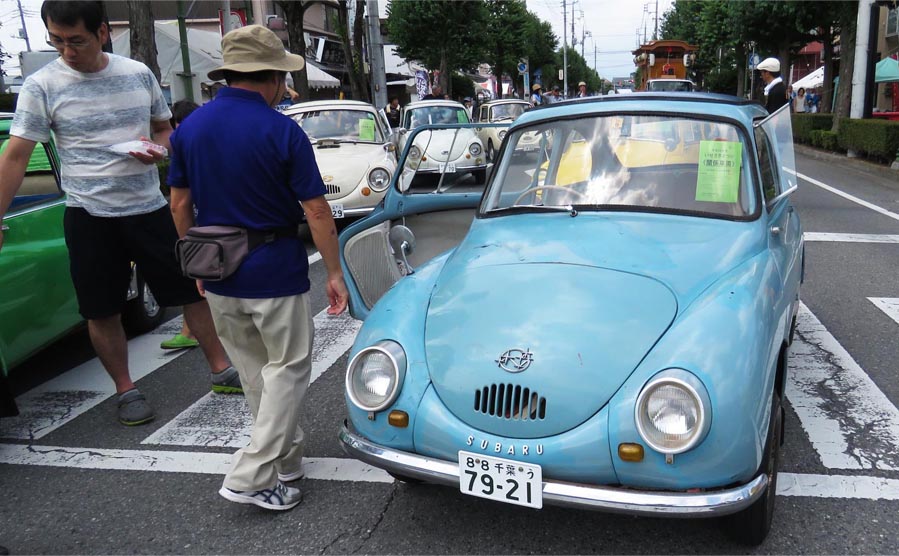 | 伊勢崎市の夏の風物詩いせさきまつり。イベントの先陣を切るのはオープニングパレード。今年は30団体、800余名が参加し、行進しました。中でも注目されたのが9台のスバル360。昨年に続き2度目の参加です。群馬県内を始め、遠く愛知県や神奈川県、千葉県、栃木県から駆けつけてくれました。 伊勢崎市はスバル360の生誕地。1958(昭和33)年、かつての富士重工伊勢崎製作所第二工場(現・伊勢崎ショッピングモール)で誕生しました。60年前に開発されたスバル360。その可愛らしい姿は多くの人を魅了し、今なお現役で走り続けています。 |