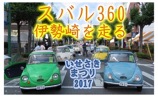 9台のスバル360・ふるさと伊勢崎を走る。いせさきまつり2017・オープニングパレードに参加(3分39秒 ) ![]() スバル360伊勢崎を走る ![]() 千葉県から参加 ![]() 栃木県から参加。車のナンバーが”360” ![]() 愛知県から参加 |