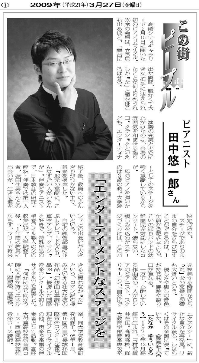 2009/3/27掲載 ピアニスト 田中悠一郎(たなかゆういちろう)さん