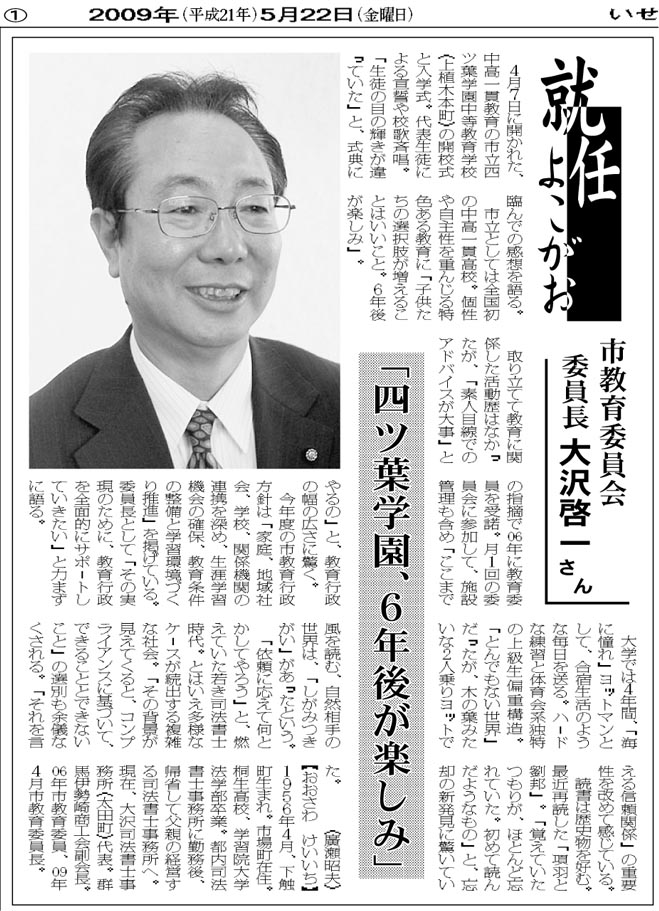 2009/5/22掲載 市教育委員会 委員長 大沢啓一(おおさわけいいち)さん
