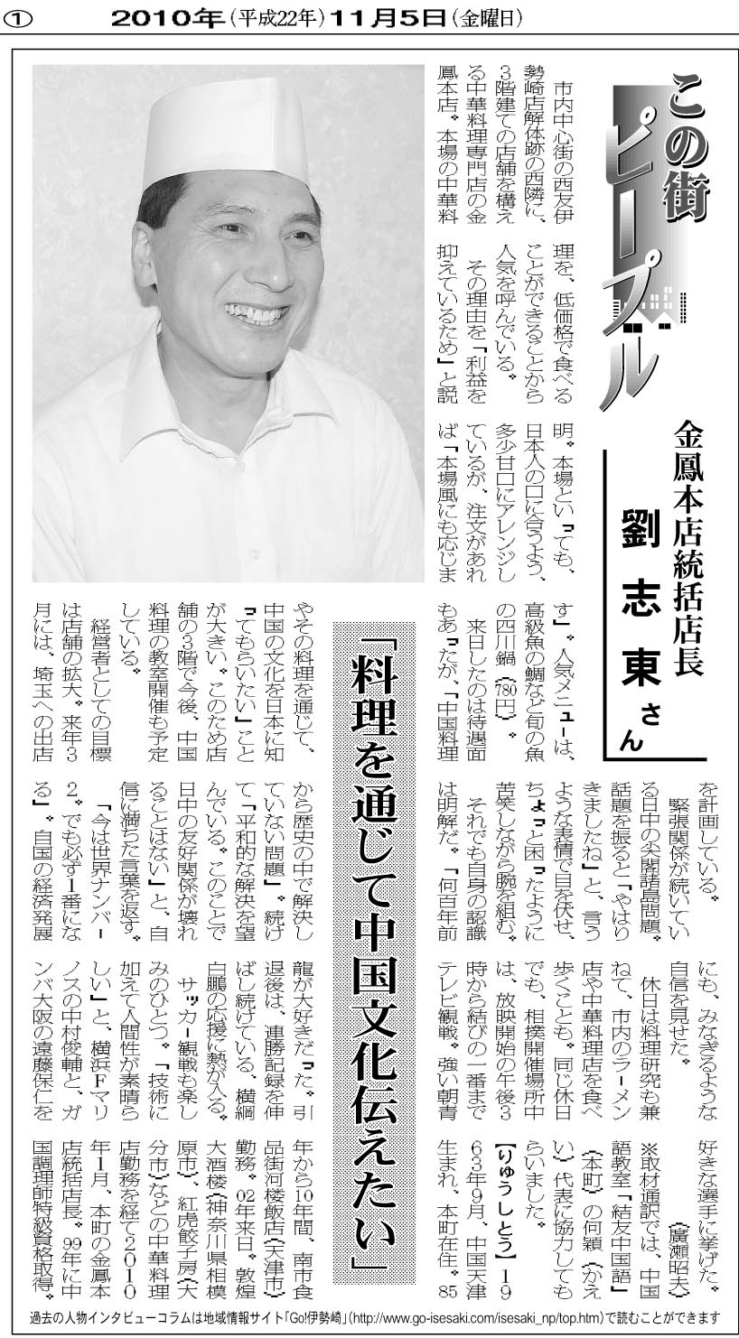 金鳳本店統轄店長 劉 志東(りゅう しとう)さん