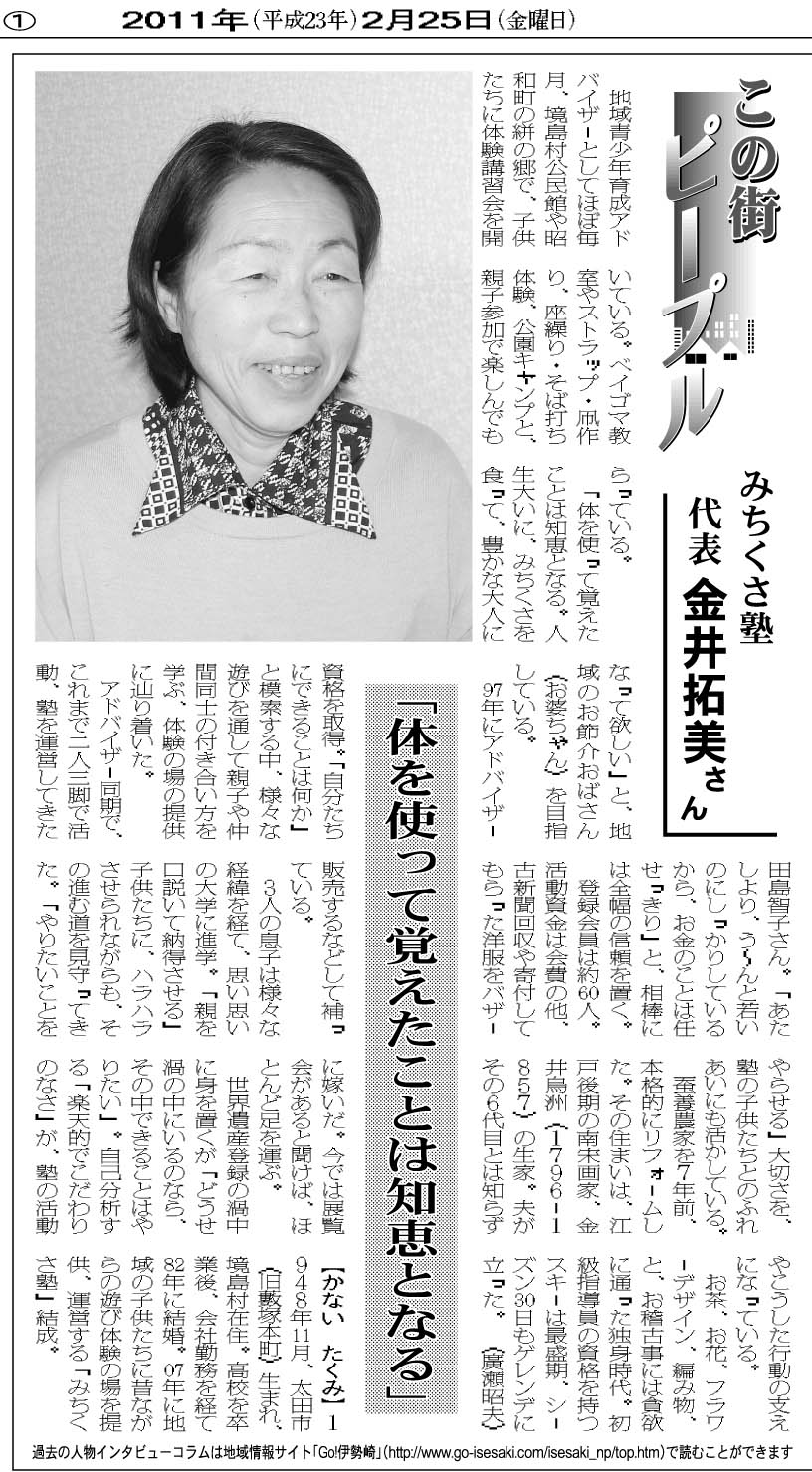 いせさき新聞・「就任 よこがお」、「この 街ピープル」