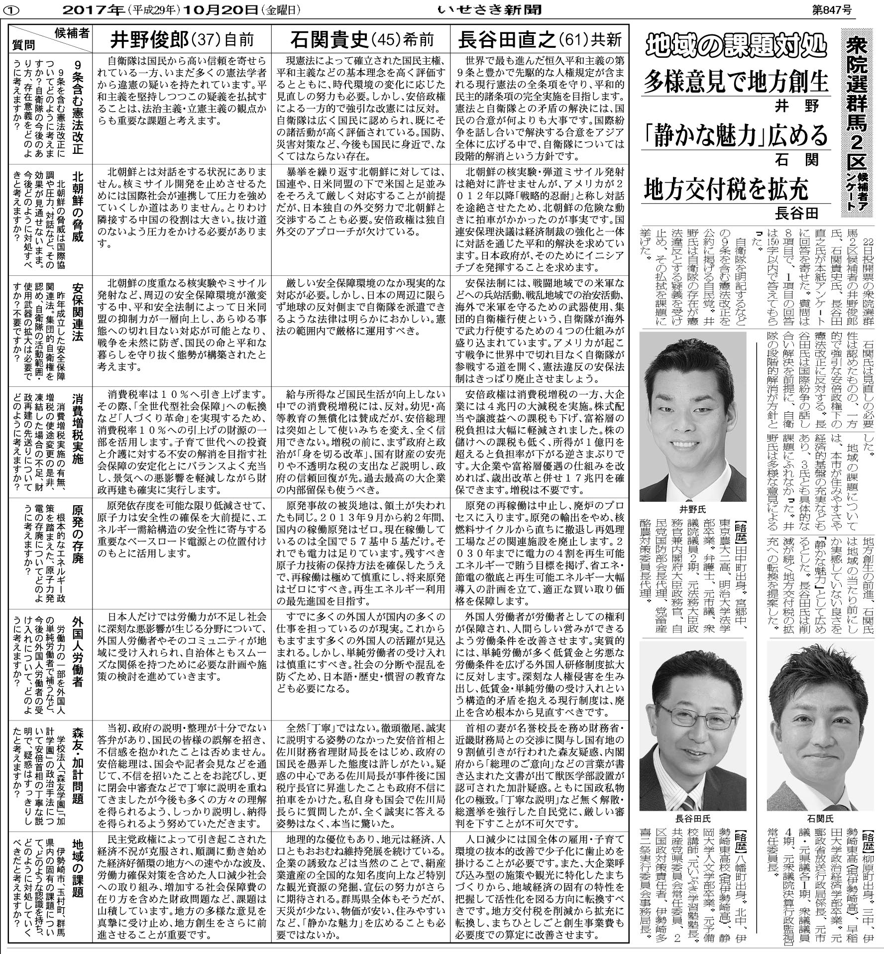 多様意見で地方創生(井野)、「静かな魅力」広める(石関)、地方交付税を拡充(長谷田)