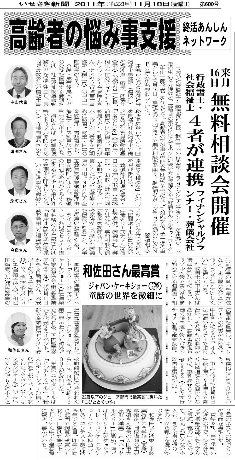 来月16日・無料相談会開催 行政書士、社会福祉士、ファイナンシャルプランナー、葬儀会社 4者が連携