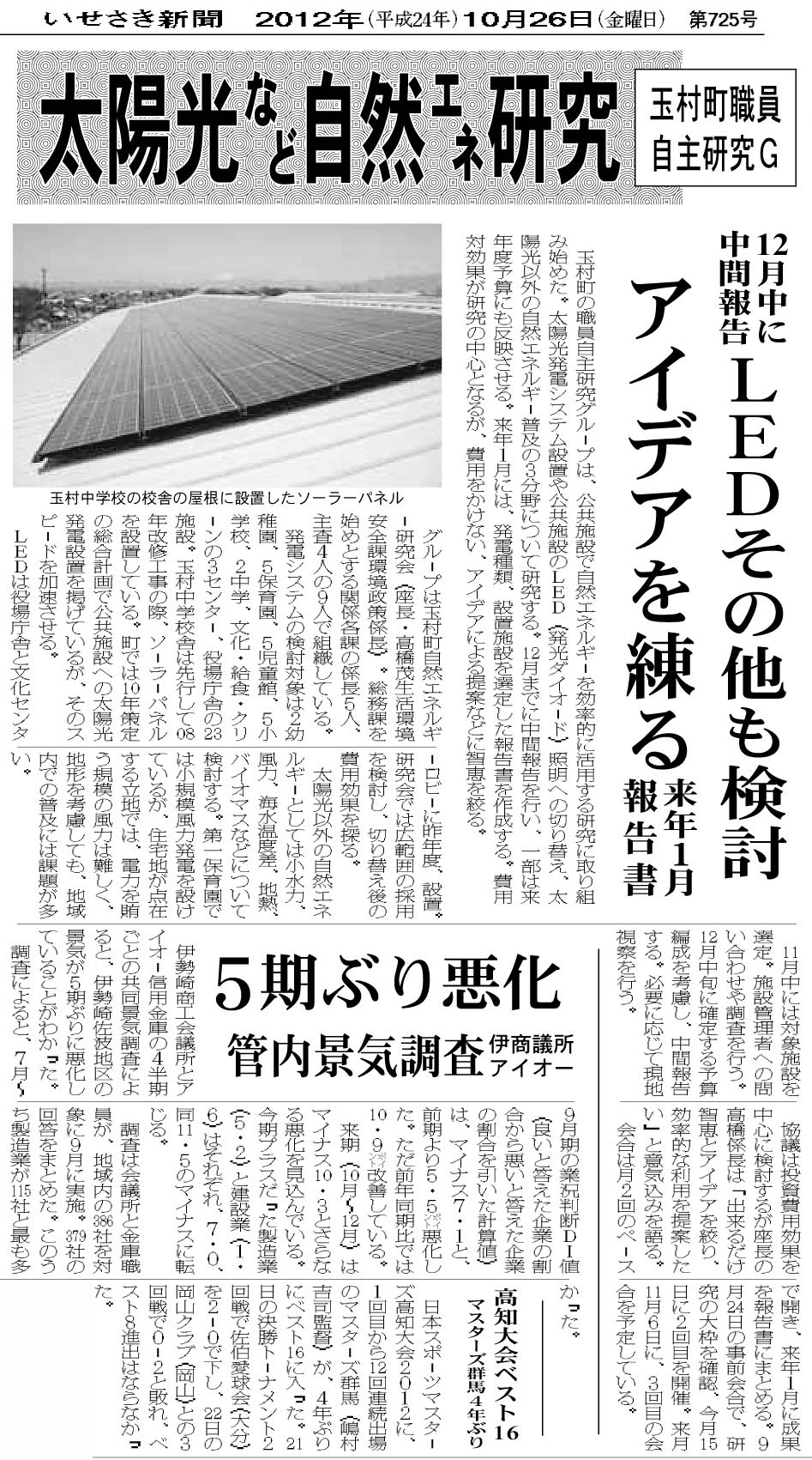 太陽光など自然エネ研究 玉村町職員自主研究G