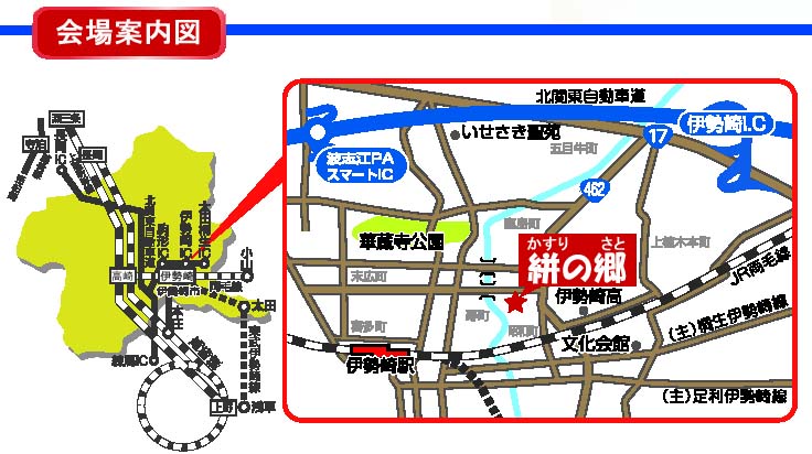 ![]() 絣の郷交流まつり タイムスケジュール ![]() 地域交流物産展参加団体の紹介/物産関連参加団体の紹介 ![]() 会場案内マップ [ 拡大 ] →チラシのダウンロード 表面|裏面 |