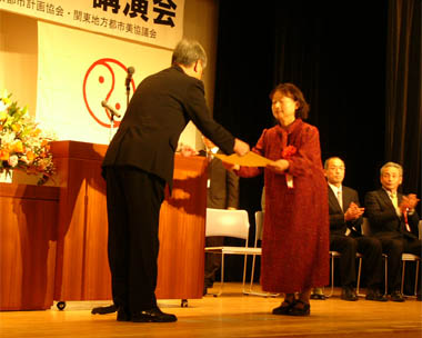 ![]() 金井尋子さん受賞 ![]() 「ラブリバー広瀬ユキヤナギ」さん受賞 ![]() 「広瀬川景観形成」さん受賞 ![]() 受賞理由を講評する 伊勢崎市景観審議会会長の小林享氏 |
