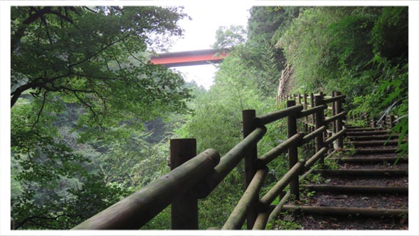 ![]() 不動滝の展望台 2017/8/19 ![]() 不動滝の滝つぼ 2017/8/19 ![]() 緑に囲まれる不動滝 2017/8/19 ![]() 展望台と県道をつなぐ階段。後方は「滝の上橋」 2017/8/19 |