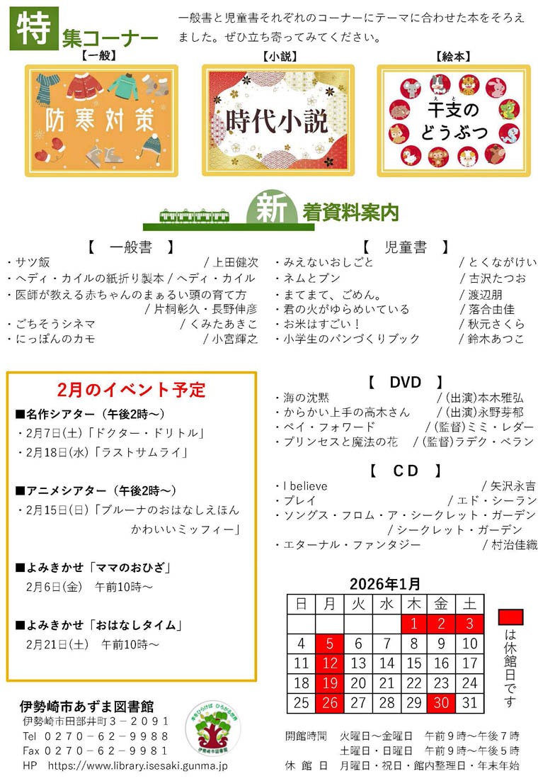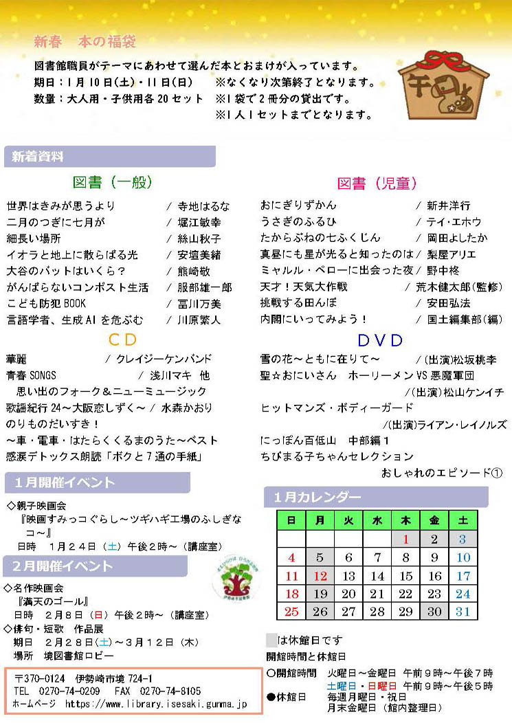 伊勢崎市内の図書館だより 2026年1月