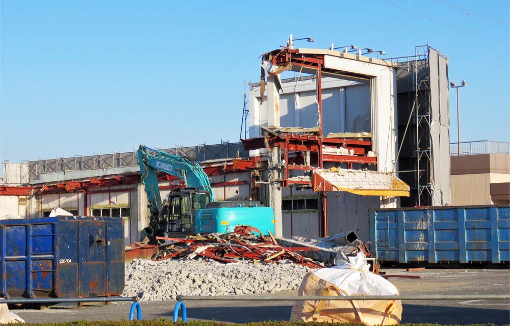 旧”ロン都”解体工事進む 2021/11/17 伊勢崎西部モールの旧”ロン都”の解体工事が進んでいます。前回レポートから約2週間経過した11月17日、旧”ロン都”の象徴的存在だった正面の半円形の壁は解体され、側壁寄りの一部が残され、側壁は東西両側共まだ残されていました。新築、増築、改築、解体・・・、建物の様々な歴史の過程で、解体には一抹の寂しさを感じます。(2021/11/19