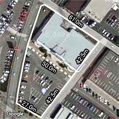 旧”ロン都”、整地完了 2022/1/16 伊勢崎西部モールの旧”ロン都”の解体工事。年明けの1月16日、工期の1月31日に余裕を残し、解体から撤去、整地まで全ての作業を完了し、西部モールのド真ん中に広大な敷地が広がっていました。Google距離計測機能を用いて概略面積Aを計算すると