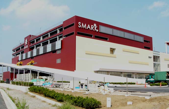 | 2008/9/28、現地では駐車場や植栽工事などの外回り工事が進み、上武道路の側道の改良工事やゲートの工事も進んでいます。また敷地内全体に駐車場やモール名、場内案内の看板が立ち始めました。 2008/9/20、前回からたった1週間後のスマーク報告ですが、現地では植栽工事が進み、照明灯が設置され、舗装が未完だった地上部駐車場の路盤工事が進み、また桐生県道側の入口の工事も始まりました。内部の様子は分かりませんが、正面のガラス面のSMARKのスペルや立体駐車場のロゴなど、北側の壁の要所にロゴが新たに張り付けられました。 2008/9/14、SMARKは遠巻きに眺める限りほぼ仕上がっている様子です。地上部の駐車場は区画線まで入り、外構工事も進み、一部植栽工事も進んでいます。正面の前には三角形の白い鉄塔が立ち、モニュメントのようであり、オブジェのようでもあります。何ができるのでしょうか。 2008/8/31、SMARK建設地では外構工事や地上部の駐車場工事、建物本体の広告用の下地処理等が進んでいました。内装工事も進んでいるのでしょうが、残念ながら、外回りからは確認できません。 |