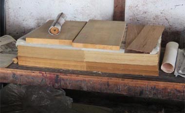 ![]() 上毛新聞印刷センターさんからいただいた 白紙の新聞紙をプレス中 ![]() 長期間プレス中の新聞紙 |