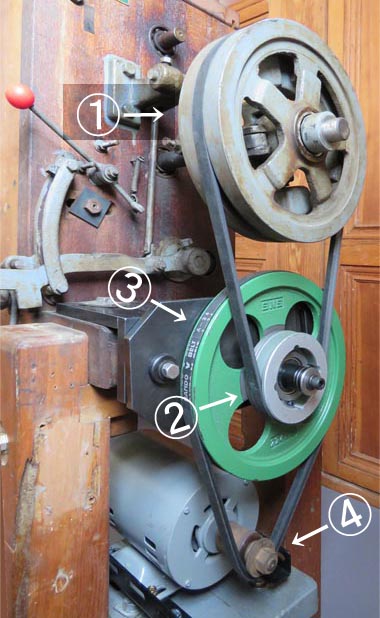 ![]() A、Bを追加してプーリーを2段構造に改良 2016/6/4 |