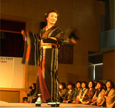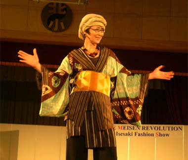 | 今年もいせさき銘仙の日のメインイベントは、「いせさき銘仙の会」(会長:杉原みち子さん)の銘仙ファッションショー「The Meisen Revolution」。会場は伊勢崎市立北小体育館(赤石楽舎)です。女性モデル36名、男性モデル11名、総勢47名のモデルさんが、様々な形の銘仙を着こなしてランウェイを颯爽と歩き、観客の目を釘づけにしました。 モデルは伊勢崎市在住か在勤の人を中心とし、プロのモデルはいません。女性モデルはミスひまわり経験者や劇団員、ダンス修得者、市内企業経営者の奥様方、四ツ葉学園の留学生ら、また男性モデルは衆議院議員や県会議員、市議、プロサッカー選手や昨年も出演した社会人の皆さんです。 ![]() 衣装から舞台レイアウト、BGMなどのトータルコーディネイトは今回も高木照子さん(「伊勢崎銘仙の会」)。 今年は十日町市から着物愛好会の皆さん24名や十日町市長や商工観光課長、また仙台市からも着物愛好会の皆さん18名が訪れ、着物に身を包んでランウェイの周りを囲み、熱心に観覧していました。 昨年は若手モデルが多く、昨年の観覧者から「中年層の着こなしも見たい」との要望があったため、今年は中年層のモデルさんを増やしたとのことです。皆さん、無償ボランティア出演です。 かつて、日本中の女性たちを魅了した伊勢崎銘仙の古くて新しいファッションショー、どうぞご覧ください。(2013/3/4 記) |