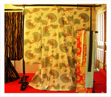 ![]() 玄関を飾る「きじま銘仙」の着物 |
