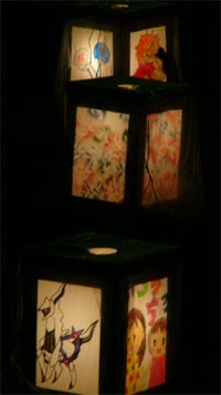 ![]() 広瀬川の堤防沿いの道に並ぶ露天商 ![]() 夜の帳も下りて浮かび上がる灯ろう |