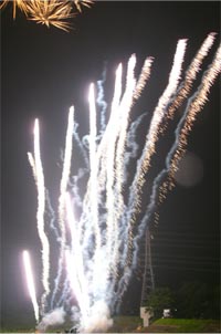 | 午後8時になりました。 いよいよ花火の打ち上げ開始です。まずは前半の打ち上げです。 |