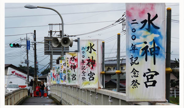 太古から人間は自然の神羅万象に恐れを感じ、神として祭り、敬い、自分自身を始め家族、地域の安全を祈り、崇拝してきたものである。その名残が化学文明の発達した現代にも、色々な形で各地に伝承され残っている。 水に対しても水難を起こしたり人々の生命に危害を加える盤怪的なものとして恐れられる反面、人々の生活や農業に欠くべからずものとして、雨や水の恵みを祈り続けてきた。全国に水難、火難を避け、また旱魃(かんばつ)に雨乞いをするために水神を祭り、水天宮を建てて信仰し、お祭りをしている所が数多くあります。 広瀬川は比利根川と言われた昔から何回となく氾濫を繰り返してきたが、文化10年に未曾有の大洪水を起こし、当時伊勢崎地方に二ヶ所きりなかった大橋の一つである茂呂の大橋も流され、家や田畑の被害も甚大でこの地方の住民は大いに困った。 この茂呂の大橋というのが、今の光円橋の所にあったものである。 この大洪水の恐ろしさを忘れ切れない文化13年(1816年)に偶然か広瀬川で溺れ死んだり、怪我死するものが数多く出た。 先の大洪水もあり、村人が相談して洪水や水難を避け、合わせて旱魃時の雨の恵みを祈るために水神宮の石宮を光円の地に建立して、その年6月28日に茂呂村全体で水神宮祭りを行った。石宮を建ててお祭りを始める以前に何らかの水神を祭っていたかどうかは記録が見当たらないので不明であるが、古文書に見る限りこれが水神宮祭りの始まりである。 「文化13年茂呂村中で始められ、嘉永3年に又水神宮祭りこれより村中にて祭り、油代を三組に出す」と古文書に記されている。その間36年の内大部分は当時の美茂呂町地域の人が中心で行われてきたらしい。嘉永3年から7年にかけて茂呂の屋台が4台建造されている。美茂呂町の屋台は嘉永7年に作られているので、この年から水神宮祭りに屋台が参加するようになった。明治になり一時村中の屋台全部祭りに揃えようとしたが、当時の道路事情、経費、労力の面で無理だと2年位で中止になった。 明治の末、日露戦争で出征した兵士が船で海を渡った時、船の照明が海面に映えて美しかったのが印象に残り、帰還後それを再現しようと川の向こうからこちらに針金を渡してそれに灯油と灯心を急須に入れたもの幾つも吊るし、火をつけてカンテラ式に川面近くにさげたら、灯りが川面に映えり美しく人々の目を楽しませたこともあった。 明治の始めから大正と昭和の戦後間もない頃まで、若者がそれぞれ趣向をこらして浮かし灯篭を造り川の流れのなかに浮かべ、表面に絵や文字を書き、中に水流を利用して回転するものをつけて、ランプ状のものか、ローソク状の灯りで、走馬灯のように見せて奉納していたものです。 そのころ、いつからかははっきりしないが、伊勢崎地方は織物が盛んになり、当地も織物関係に携わる人々が多く、機屋(はたや)と言われる、いわゆる織元が多数ありましたが、その一軒である児島佐吉さんが商用で京都など関西方面に出かけた時、精霊流しを見てきて、美しいものであり、幻想的でもあるから、ここでも水神祭りの時、広瀬川に灯篭を流してみたらどうかと茶飲み話に話題としたら、それはよい、やってみようと祭典委員会で決まり、灯篭流しが始まったと言われる。 最初は麦藁を十字に縛り、ローソクをつけたものだったらしいが、材質も造りも時と共に変化して来たが、近隣に「茂呂の灯篭流し」として有名になり、水神宮祭りと言うより茂呂の灯篭流しと言われて大いに賑わった時代があった。 大正、昭和の時代から31日の祭りには花火の打ち上げはあったが、戦後昭和30年代の高度成長期を迎え、祭典委員さんの努力もありましたが、近隣の企業商店個人の方々のご厚情もあり、ご寄付も頂き花火の打ち上げも盛大となり、水神宮の奉納花火も伊勢崎地方の夏の風物詩となり、今は「茂呂の花火大会」と言われるようになりました。 変遷を経ながらも長く続く伝統行事を守り受け継ぎ、後世に残したいものです。 |