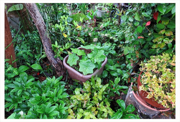 2025の今年、このうち円形の33cmの鉢からは無事に発芽し、昨年にも勝る大きさに成長しましたが、正方形の33cmの鉢からは一つも発芽せず、発芽時期から一か月後、鉢の土をほぐしてみると、中には全く何もありませんでした。根っ子の残骸さえもありませんでした。 ![]() 生き延びて元気に成長した鉢植えと死滅した鉢植え。その差は何だったのでしょう。 病気や害虫? 凍結や遅霜? 2鉢を1mほど離れた距離に置き、使用した土は同じ(自家製腐葉土)、施肥や水あげも同じ、気温と日射量もほぼ同じだったはず。原因は謎です。 残る1つ、内径22cmの寄せ植えは今年も発芽し、ほかの山野草と共に元気な姿を見せてくれました。寄せ植えするには22cmでは小さ過ぎるので、開花中に辺長33cmの鉢に丸ごと移植しました。 残る2鉢のハッカクレン。絶やさないように今年は増殖に挑戦しようと思います。 【ハッカクレンの移植や種蒔き】 ■植え付け、植え替え・・・・10月下旬から11月いっぱい 鉢から抜いて根をほぐす。ゆったり入る鉢に根を広げ、芽を2cm前後覆土する。 増えた株は株分けする。長く太い根はカットして1cmほど覆土する。 ■とりまき(*1)・・・・・11月中 (*1):採取した種子を、保管しないですぐに蒔くこと。「採ったらすぐに蒔く」ので「採りまき」。山野草や野生種・樹木のタネは、概して「採りまき」をすべきものが多いよう。 内径33cmの鉢のハッカクレンすべて開花、落花もはじまる 2025/5/10![]() 赤紫色のハッカクレンの花がほぼ全て開花しました。 今年の11月には「とりまき(採り蒔き)」に挑戦予定。2025/5/10 ![]() 昨年、大胆に庭木を強剪定したので、今年は日陰が少ないのが心配。2025/5/10 大きな葉っぱの長さは35cm![]() 大きな葉っぱの長さは35cm 2025/5/10 2025/5/3![]() 日陰づくりのため、隣にコナラの鉢植えを置きました 2025/5/3 ![]() ハッカクレンの名前の由来、8つの角が分かります。2025/5/3 ![]() 花をアップで撮りましたが下向きなので雄しべ、雌しべの様子は分かりません。2025/5/3 ![]() 何ともユニークなハッカクレンの花 2025/5/3 ![]() まだ蕾がいくつか残っています。全部開花するのは一週間後辺り? 2025/5/3 2025/4/22![]() 開花が始まりました 2025/4/22 ![]() 葉っぱが大分成長しました 2025/4/22 ▲ページTopへ 寄せ植えしたハッカクレンミツバツチグリとミヤコワスレと一緒に寄せ植え大きな鉢に移植 2025/5/3![]() 一回り大きな鉢(辺長33cm)に移植しました 2025/5/3 2025/4/21![]() 野の風情がいい感じです 2025/4/21 |
