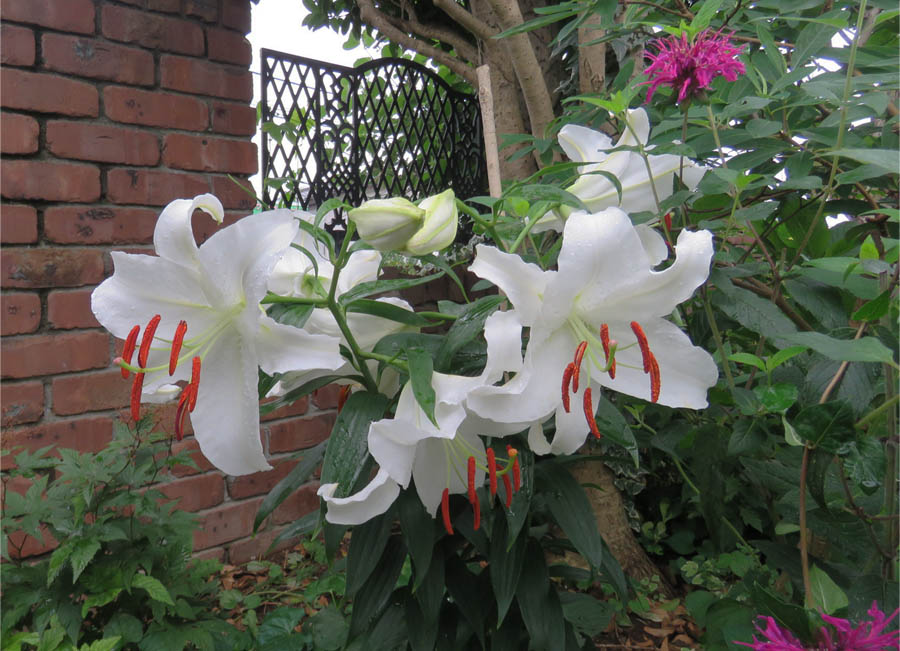 | 6月中旬頃から我が家のヘメロカリスとヤブカンゾウ、ノカンゾウ、ユウスゲのワスレグサ属の花たちが順次咲き続け、咲き終えた茎を一本、ニ本と切り取る日々が続き、そんな毎日のお決まりの作業から夏の日の移ろいを感じていますが、数年前からは株数が増えてまとまって咲くようになったオニユリがワスレグサ属の後をバトンタッチし、夏の庭仕事が少し増えました。 オニユリが咲き続けるのは2週間程度。例年ならば、このオニユリが終わると、庭で咲く花はミソハギやムクゲ、ハギ程度になり、早咲きのリコリス系の花が咲くまでの間は、葉っぱ中心の庭に代わります。 ところが今年は、オニユリの後に、優雅でゴージャスなユリの仲間が咲くことになりました。その名はカサブランカ、品種は新潟県中魚沼郡津南町育ちの「 カサブランカ・津南の「雪美人」 。色は白。 ![]() 実はこのカサブランカ、今年の4月24日に知人から球根をいただいたもの。資料を読むと、球根の植え付け適期は、10~11月。 「あちゃ~、4月じゃ遅過ぎか!」と思いながら、慌てて翌4月25日に植え付けました。いただいた球根は5球。一球が児童の握り拳ほどの大きさで、スカシユリに比べるとかなり大きいです。2球を鉢に植え、残り3球は2ヶ所に分けて地植えしました。植え付け時の注意は・・・