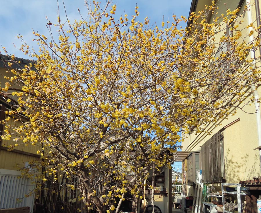 | 庭に様々な花や木を植えて通年楽しんでいますが、12月中旬を過ぎると黄葉も終盤になり、花も少なく、殺風景になります。園芸店ではパンジーやプリムラ、葉牡丹、ポインセチア、シクラメン等、耐寒性の花を売っていて、我が家でも道路沿いの花壇には植えますが、屋敷内の庭には植えず、四季折々の宿根草の開花を待つのみです。 そんな庭の冬景色に彩を添えてくれるのがロウバイです。我が家のロウバイは2種類あって、1つは早生種で、12月中旬から咲き始め、1月初旬には満開を迎えます。ロウバイを気に入っているのは、辺り一面に芳香を漂わせてくれること。梅やバラ等、微香を発する花と異なり、また身体が触れると芳香を発するハーブ類等とも異なり、モクセイ同様、その香りは結構強く、近くへ寄らずとも香ってきます。 前回紹介から2年が経過していますが、樹高も枝張りも一回り大きくなりました。もろに北風の通り道に立っていますが、この場所を気に入ったようです。(2026/1/9 記) |