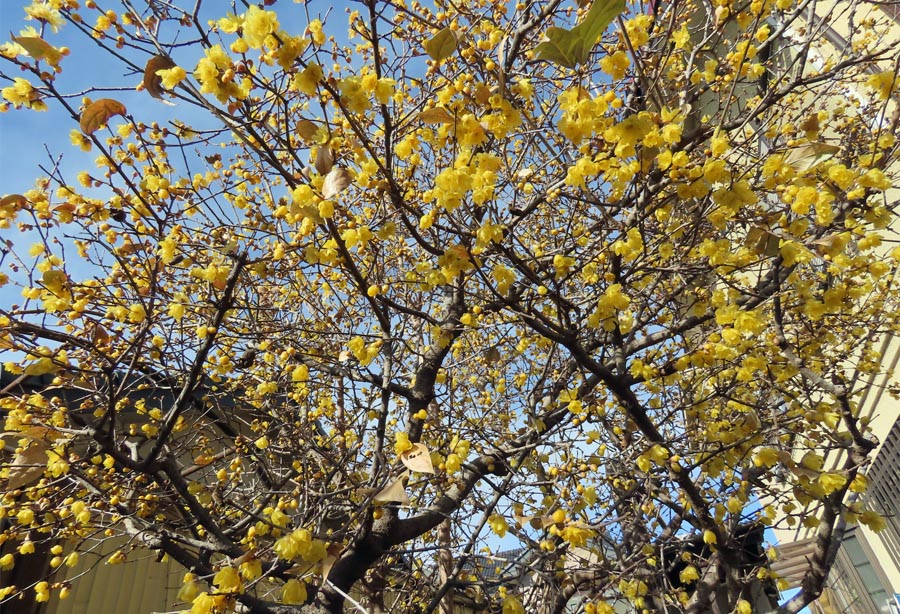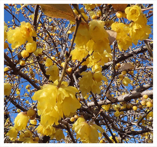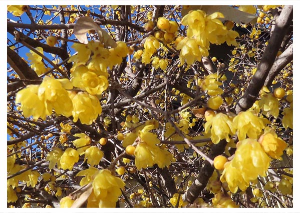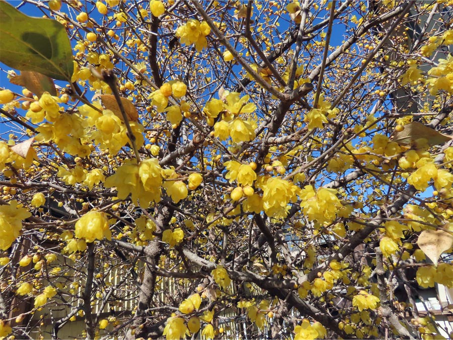 正月準備万端、ロウバイ満開先日、紹介したばかりの我が家のロウバイ。12月30日にはほぼ満開になり、庭に甘い香りが漂っています。切り花にして玄関や家の中の数か所に飾ると芳香剤の代わりを務め、正月気分を味わわせてくれます。ロウバイは我が家の正月の名脇役として欠かせない存在です。(2024/1/1 記) |