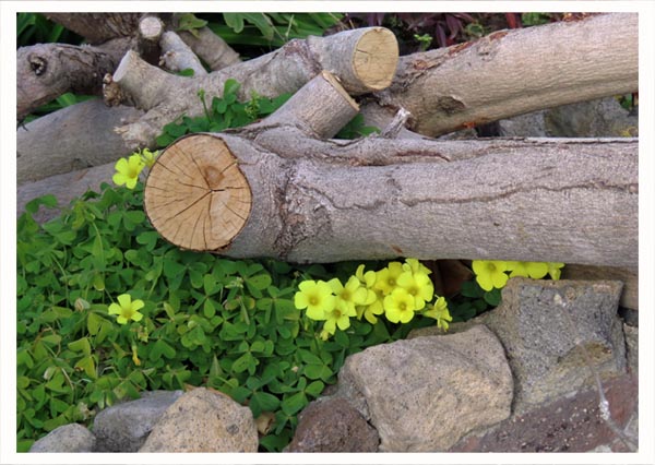 十数年前に山野草好きな友人からいただいたキバナオキザリス(オオキバナカタバミ)。ロックガーデンの木陰に植え、絶えるでもなく増えるでもなく、この十数年間、小ぶりの塊のまま過ぎていました。ムラサキカタバミは繁殖力旺盛で、庭のあちらこちらで増えるので、時々バッサリと除去する一方で、「キバナはおしとやかで繁殖力が弱い」と思っていたところ、今年は突然にタップリと増えました。 原因を考えるに、増えた場所には昨年までキバナホウチャクソウがたくさん育っていましたが、茎が枯れた冬季に、枯葉と土で覆ったところ、その量が多過ぎたせいか、発芽できずに絶えてしまいました。元の地主がいなくなったので、進出してきたのでしょう。キバナホウチャクソウは貴重だったので残念なことをしましたが、キバナオキザリスが増えたので結果OKとしましょう。(2025/4/13 記) ![]() 群れて咲くキバナオキザリス 2025/4/8 ![]() 強剪定したハゼの幹を横たえて置いたところ、その隙間から顔を出しました。2025/4/8 ![]() 可憐な花姿ですが、曇天や雨天では花弁を開きません。 2025/4/4 ![]() 強剪定したハゼの幹の隙間から顔を出すキバナオキザリス 2025/4/4 ![]() 直径は3cm前後 2025/3/13 ![]() 開花が始まりました 2025/3/13 |