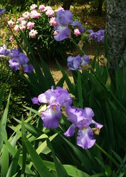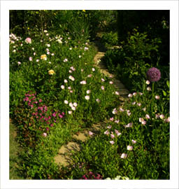 ![]() 玄関へのアプローチを飾る花ハーブや ジャーマンアイリス |