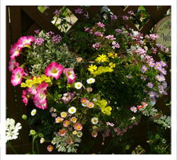 ![]() 玄関を飾る寄せ植え ![]() キンモクセイの足元で咲くペチュニアなど |