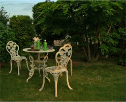 ![]() ガーデンの奥は緑に囲まれた癒しの空間。隣家との境界は格子ラティス。 ベンチやテーブル、木のドア、床の小石やレンガ、いい感じです。 ![]() 木製の門越しに眺める緑いっぱいの前庭。門柱にさりげなく下げられた寄せ植え。 ![]() 入口脇の庭。可愛らしい郵便受け。裏庭へ通じる小路も緑に囲われています。 ![]() 家の東側の庭。バラのアーチや足元には山野草。 |