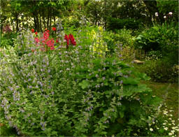 | 【訪問日】2014年5月14日 小さなナチュラルローズガーデンは、ナチュラルグリーンガーデンとミックスガーデンのお隣さんで、皆さんが仲良く交流しながらガーデニングを楽しんでいます。ガーデンの名前の通り、バラを中心としたイングリッシュガーデンで、大きな楓やヤマボウシなどの落葉樹で木陰を作り出し、地植えや鉢植えされた様々なバラを主役に、足元はハーブやギボシ、山野草が覆い、アそれらの間にスチルベやアイリスなどの花が彩を添えるように咲いています。聞けば、ご主人が主にバラ担当で、奥さまが草花やハーブ、山野草担当とのことで、それらが夫婦仲の良さを示すように、程良い量で調和しています。 今年は、バラたちがオープン日より少し早目に咲き始めたようで、訪問日の5月14日、既に見ごろを迎えたバラもありましたが、種類が豊富なので、オープン日にちょうど見ごろを迎えるバラもあることと思います。(2014/5/21 記) |