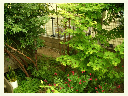 ![]() 玄関脇に対になって造られた花壇は、アイビーで丸く縁取られ、ネモフィラや 麦なでしこ、ノースポールなどが寄せ植えされています。 ![]() 鮮やかで可愛らしいピンクの麦なでしこ ![]() ギボシに射しこむ木洩れ陽とレンガの小路、鮮やかな赤い花。 ![]() 花壇ではかすみ草やオステオスペルマムが真っ盛り ![]() 緑があふれる庭。レンガの小路と所々で鮮やかに彩を添える花たち。 |