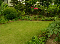 ![]() ![]() 石のステップに導かれる庭園 ![]() 芝生の緑が優しい |