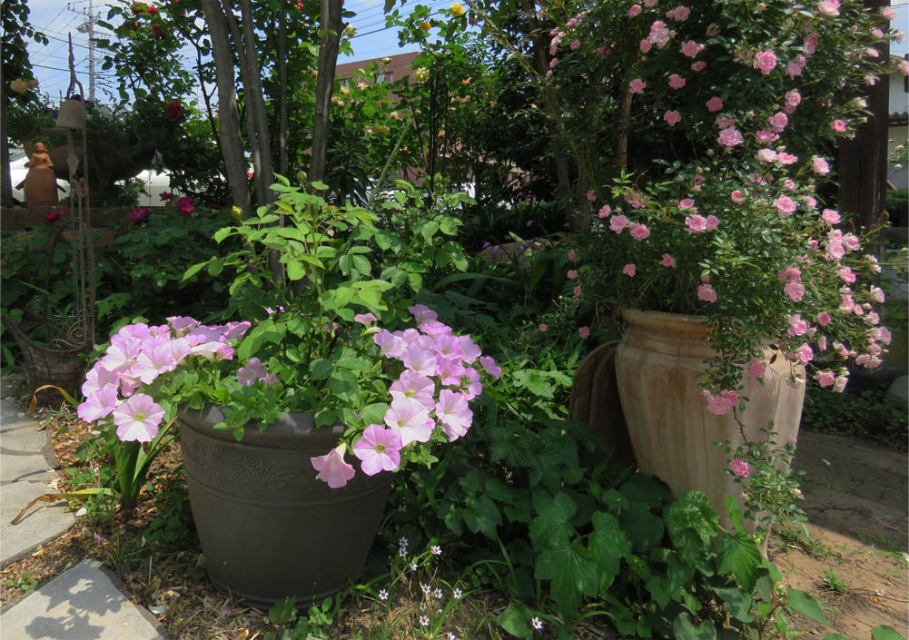 ![]() 蔵の北側の駐車場で迎えてくれる「蔵 きつねくぼ」と書かれたボードとバラ 2016/5/14 ![]() 駐車場脇を飾る赤やピンク、ハダ色の大小様々なバラ 2016/5/14 ![]() ペチュニアやバラの大きな鉢 2016/5/14 |